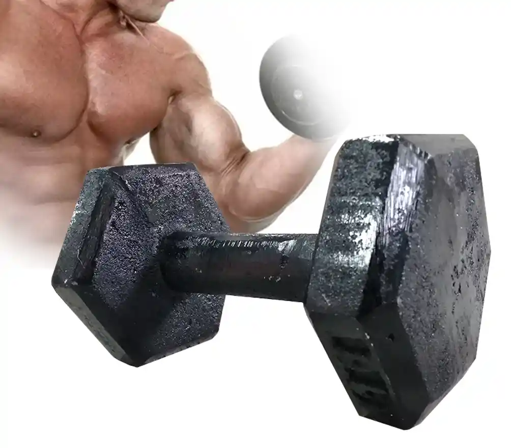 Mancuernas de hierro forma hexagonal, Ideales para entrenar en casa mejorar la figura y fortalecer el cuerpo.• Una unidad de mancuerna color negro de hierro fundido.• Dimensiones 19cm de largo * 11.5cm de alto.• Largo de la barra 12cm , grosor 2cm.• Peso: 10Lb.