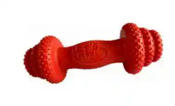 La Pesa pequeña Let's Play es un juguete mordedor macizo diseñado específicamente para perros de razas grandes, fabricado en materiales resistentes como caucho o caucho termoplástico (TPR) para promover la salud bucal mediante el masaje de encías y limpieza dental, son un excelente juguete para que tu peludo libere tooodo su exceso de energía