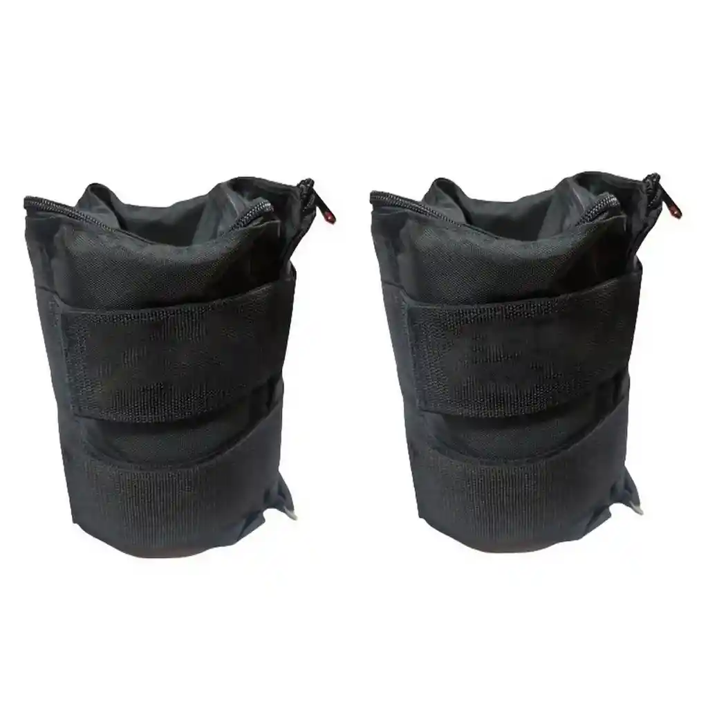 Peso: 16 Kilos en total, 8 kilos en cada pie. Incluye el par. Material lona 600 impermeable recubierto en pvc Relleno: hierro granulado. Peso ajustable. Doble ajuste en velcro.