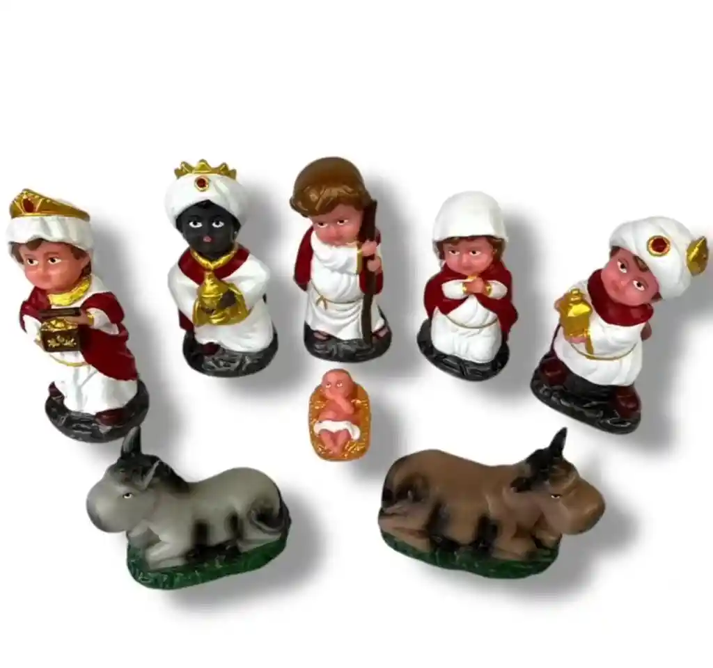 🎄✨ Pesebre de Navidad en Caucho – Pequeño 8 cm aprox (8 Piezas) Celebra la magia de la Navidad con este encantador pesebre pequeño de caucho, ideal para decorar espacios reducidos sin perder el toque tradicional. Cada figura mide aproximadamente 8 cm, con colores vivos y detalles que transmiten ternura y espíritu navideño. Perfecto para escritorios, mesas pequeñas, repisas o como detalle especial en regalos. ¡Un nacimiento compacto, resistente y lleno de encanto! ⭐👼 ⭐ Características con emojis: 🧩 Set de 8 piezas con las figuras esenciales del nacimiento. 📏 Tamaño pequeño: aprox. 8 cm por figura. 🎨 Colores alegres y detalles definidos. 🪆 Material de caucho resistente y duradero. 🎄 Ideal para decoración en espacios pequeños. 🎁 Perfecto como detalle navideño o regalo especial.