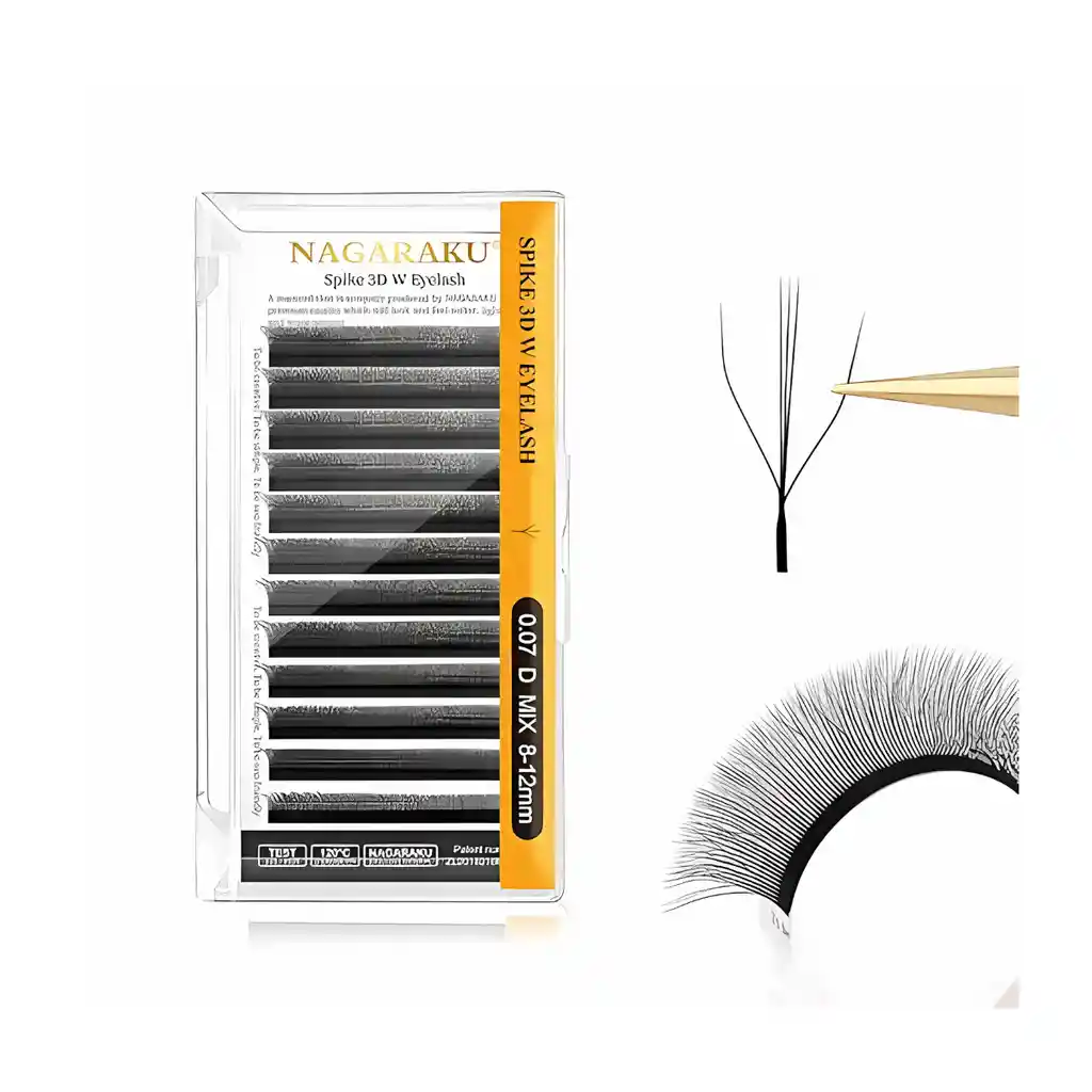 1 Pestaña nagaraku tipo W 3D 0.07-D PESTAÑAS PARA PROFESIONAL QUE MANEJAN LA TÉCNICA DE EXTENSIONES PELO A PELO Y SUS VARIACIONES, PELO DE SEDA Marca: Nagaraku Caja de 16 filas Tipo: Seda Natural Curva: D Grosor: 0.07 Largo:14