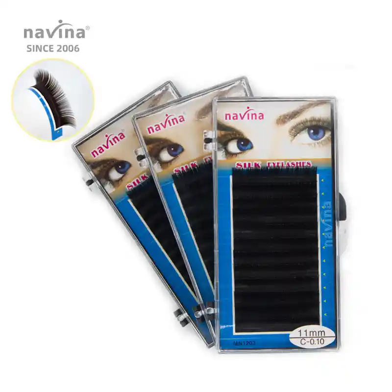 Marca: Navina Caja de 12 filas Tipo: Pelo Tipo Seda Curva: C Grosor: 0.10 mm Largo: 11 mm Ofrezca un mejor servicio a sus clientes con pestañas de alta calidad con resultados de primera.