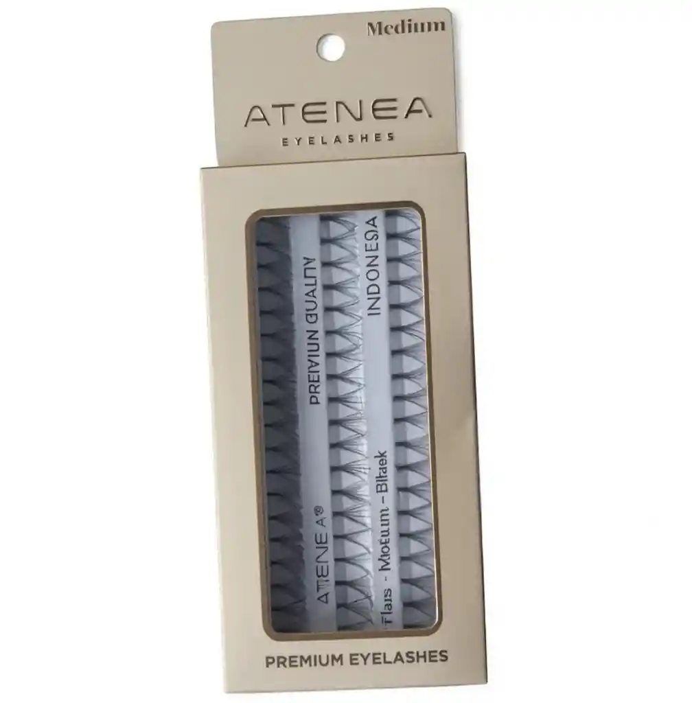 Son pestañas postizas individuales diseñadas para dar un aspecto natural y expresivo. Están hechas de pelo sintético inteligente esterilizado de alta calidad. El estilo "Flare" y el tamaño "Medium" indican que son de longitud media y con un efecto de abanico para mayor volumen.