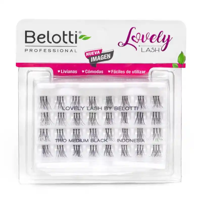 Nuestras Pestañas Belotti están elaboradas con fibras finas que garantizan ligereza, comodidad y facilidad de aplicación, sin comprometer la calidad. Cada par de pestañas está diseñado para realzar tu mirada con un acabado natural, al tiempo que protege tus pestañas naturales. Pestañas Trío: Con un diseño que también se coloca sobre las pestañas naturales, estas pestañas en formato trío ofrecen una variedad de efectos para una mirada