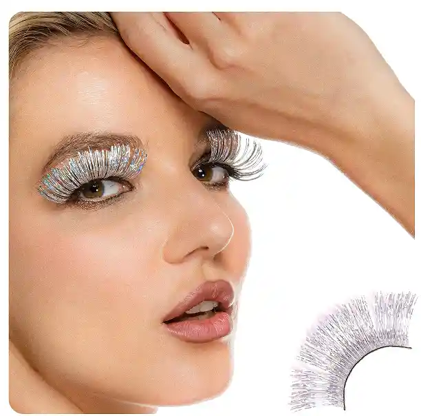 PESTAÑAS POSTIZAS LARGAS PLATEADA - HALLOWEEN