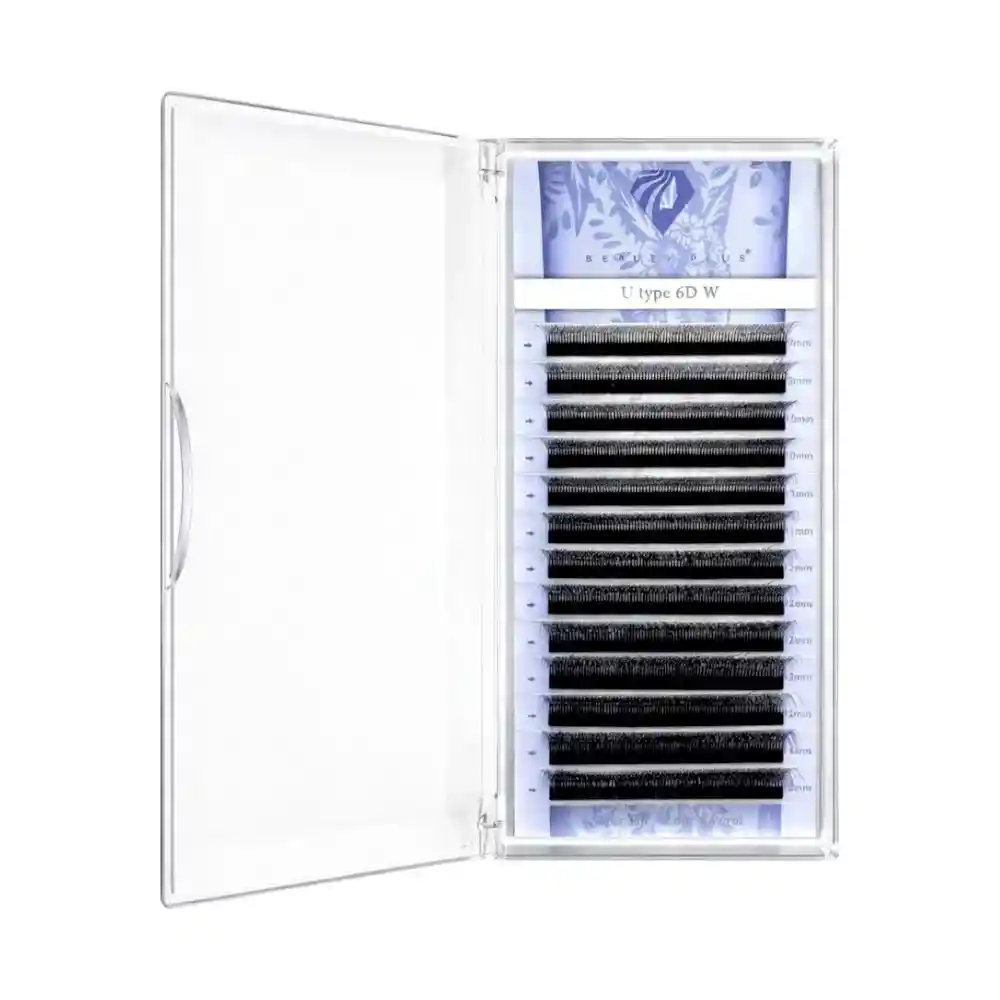 Las pestañas tipo U 6D-W, curvatura D son ideales para lograr un volumen intenso y definido con un acabado profesional. Están conformadas por seis fibras unidas en abanicos listos para aplicar, lo que permite crear un efecto más denso, esponjoso y profundo en la mirada, manteniendo ligereza y comodidad durante toda la aplicación. Su diseño tipo U facilita la apertura del abanico y una adhesión más precisa, mientras que la curvatura D aporta mayor elevación y dramatismo, realzando la mirada sin perder elegancia. Gracias a la tecnología de sus fibras, se integran fácilmente con la pestaña natural y se mantienen estables incluso en trabajos de alta densidad. Son ideales para clientas que buscan un look más glamoroso y marcado, con volumen notorio, definición y un resultado sofisticado. Curvatura: D Grosor: 0.07 Largo: 9-15 MIX