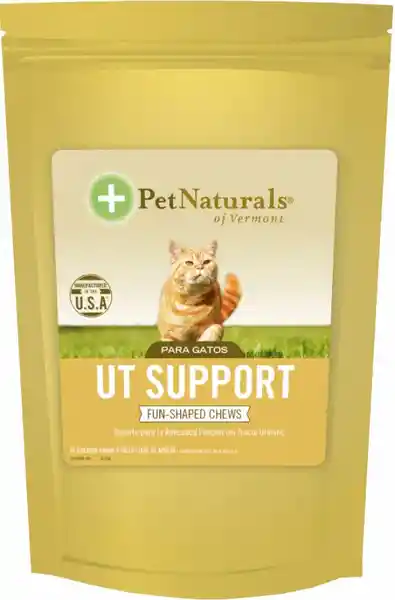 Suplemento Para Gatos Pet Naturals ut Support Fun Shaped Chews Son Masticables Para Gatos Que Ayudan al Funcionamiento Del Tracto Urinario al Promover el Mantenimiento Del Ph Normal Para Evitar la Formación de Cálculos.