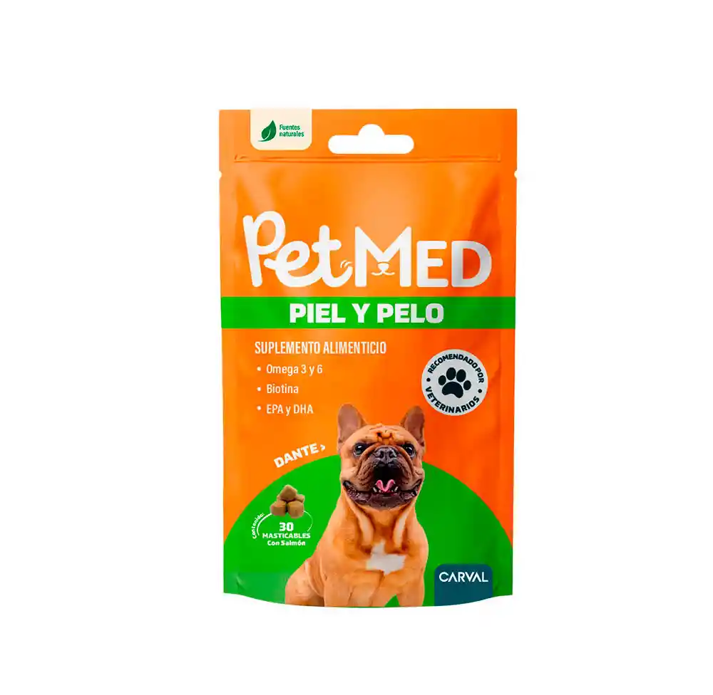 Es un suplemento funcional en forma de bocados deliciosos, diseñado para mejorar la salud y apariencia del pelaje y la piel de tu mascota