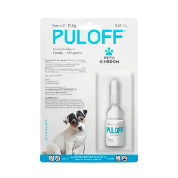 DESCRIPCIÓN: PULOFF es un antiparasitario externo de amplio espectro (Pulgas, Garrapatas y Piojos) para perros y gatos. Posee amplio periodo de acción y protección. Aplicación tópica de forma fácil y segura. Doble acción antiparasitaria por sus componentes: Fipronil y Metopreno, interrumpiendo el ciclo parasitario por su efectividad para huevos y larvas de pulgas.