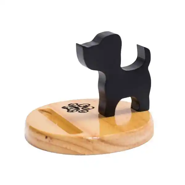 Portacelular Útil y Práctico Para Los Amantes de Los Perros. Especial Para Tener en el Escritorio o Mesa de Noche. Fabricado en Pino Alistonado. Sellado y Lacado. Color Madera Natural y Negro.