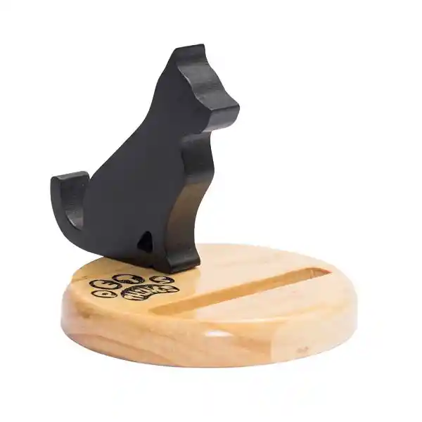 Portacelular Útil y Práctico Para Los Amantes de Los Perros. Especial Para Tener en el Escritorio o Mesa de Noche. Fabricado en Pino Alistonado. Sellado y Lacado. Color Madera Natural y Negro.