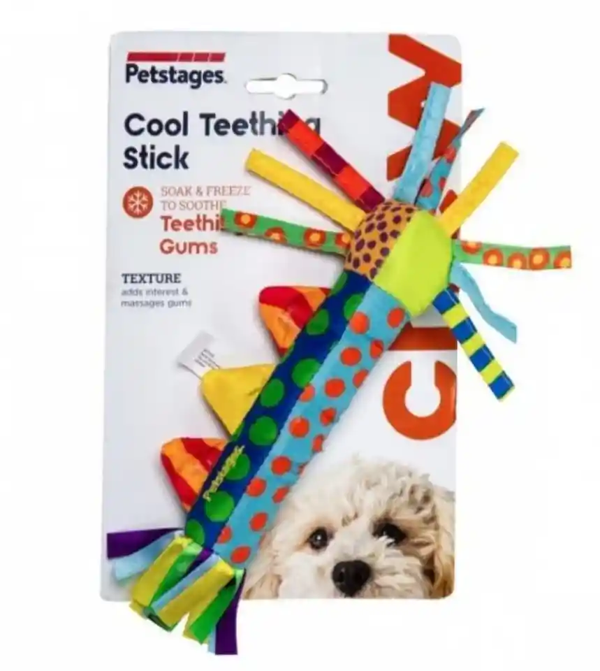 El Cool Teething Stick de Petstages, marca americana, es perfecto para tu cachorro en dentición o perro con encías inflamadas o con ansias de morder todo a su paso.Este divertido juguete se puede congelar para calmar las encías y satisfacer la necesidad de masticar. La cubierta externa se congela para proporcionar un alivio calmante para las encías sensibles, crujiente cuando está congelado, ayuda a satisfacer la necesidad de masticar de tu perro.