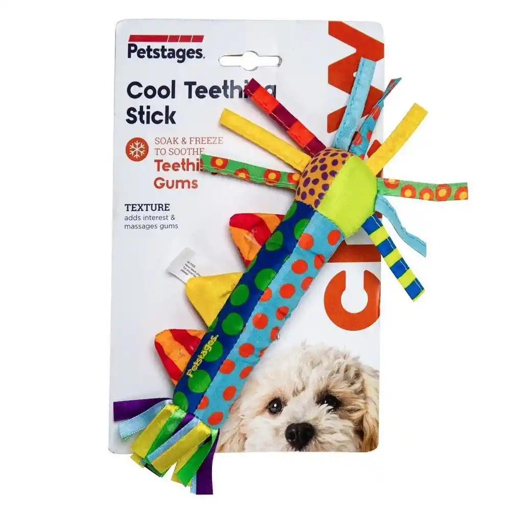 El Cool Teething Stick de Petstages es perfecto para tu cachorro o perro con las encías inflamadas. Este divertido juguete se puede congelar para calmar las encías y ayuda a satisfacer la necesidad de masticar. Características: Perfecto para cachorros en la dentición. La capa exterior se congela para proporcionar un alivio calmante. Ayuda a satisfacer las ganas de masticar de tu perro. Serpentinas y banderas añaden interés a este juguete.