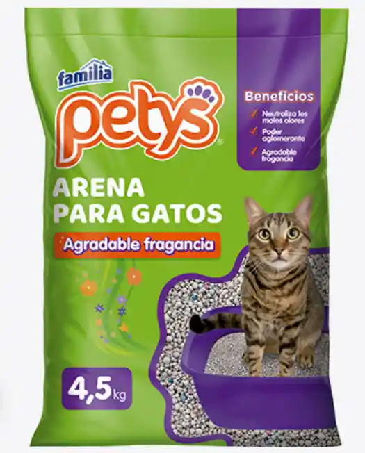 La arena sanitaria Petys (presentación 4.5 kg) es una arena aglomerante de alta calidad compuesta principalmente por bentonita (arcilla natural) altamente absorbente y aromatizantes suaves. Su fórmula forma grumos firmes al contacto con la orina, facilitando la limpieza y controlando olores