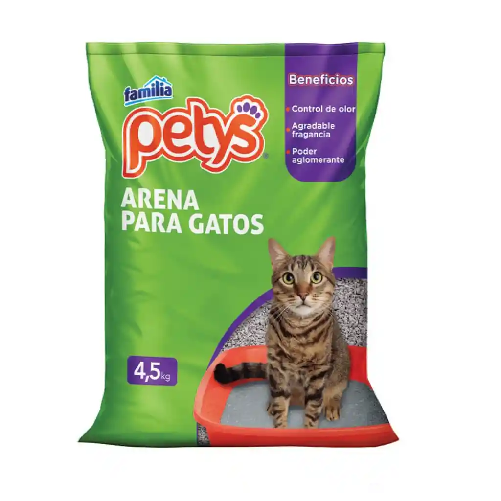 La arena para gatos Petys controla los malos olores. tiene poder aglomerante y deja una agradable fragancia.