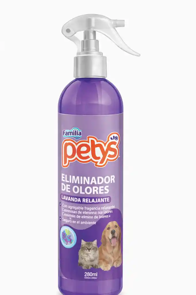 El Eliminador de Olores Petys® Lavanda Relajante es un spray higiénico y aromático que elimina los malos olores causados por tus mascotas, mientras deja un agradable aroma a lavanda con efecto relajante. Su fórmula está diseñada para neutralizar olores como orina, humedad o pelaje mojado, sin usar químicos agresivos, y es completamente segura para perros, gatos y humanos. Perfecto para mantener un hogar fresco, limpio y en calma.