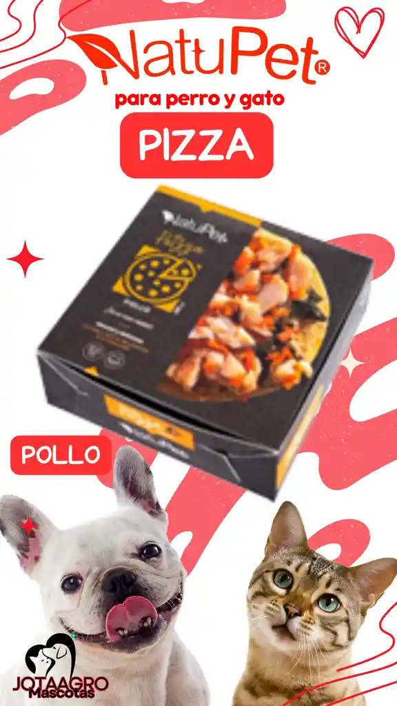 Pizza alta en proteina y verduras para perros y gatos puede consumirse crudo o caliente en horno ( 5 minutos)