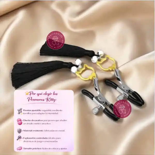 Las Pezoneras Ajustables Kitty están diseñadas para quienes desean incorporar estimulación por presión regulable dentro de juegos sensoriales o dinámicas de rol en pareja. Su sistema de tornillos permite ajustar la intensidad de forma gradual, ofreciendo mayor control y personalización durante su uso. Fabricadas en metal resistente, proporcionan durabilidad y firmeza, mientras que sus pompones decorativos añaden un toque visual elegante y llamativo que complementa la estética del accesorio. Distribuidas por PasionGift, combinan funcionalidad, diseño y control para quienes buscan explorar nuevas sensaciones dentro de un juego consensuado. Características • Presión ajustable mediante sistema de tornillos • Pompones decorativos para un diseño atractivo • Fabricadas en metal resistente • Ideales para juegos sensoriales y dinámicas de rol • Tamaño práctico y fácil de colocar Especificaciones • Material: Metal • Largo total: 18 cm Recomendación Utilizar siempre de forma consensuada y gradual, ajustando la presión según la comodidad. Limpiar el accesorio antes y después de cada uso. Distribuidor: PasionGift