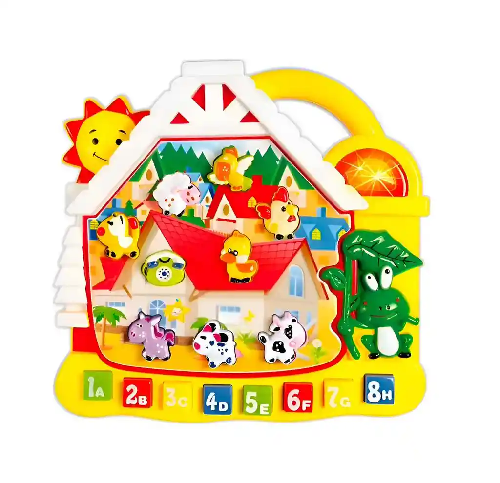 Juguete didáctico infantil en forma de granja interactiva con divertidos animalitos, botones de colores y sonidos que ayudan a los niños a reconocer números, letras y diferentes sonidos mientras se divierten; su diseño colorido y llamativo estimula la coordinación, el aprendizaje temprano y la imaginación, siendo ideal para el desarrollo de bebés y niños pequeños. Ficha Tècnica: Dimensiones del piano : 22 cm x 22 cm x 5 cm Funcionamiento: 3 Baterias AA ( Incluidas ) Materiales: Plástico ABS Edad recomendada: + 3 años Certificado de conformidad: SL-CS-210044 Referencia: CY-6043C ** _Para defectos de fábrica o retractos: \_Por favor revise el producto apenas lo reciba y antes de usarlo. No aplican ley de retracto o defectos de fábrica luego de usar el producto. Se manejan máximo 5 días para reportar defectos de fábrica (por ejemplo, producto funciona mal, piezas faltantes, rotas, etc). Para hacer efectiva la devolución el producto debe devolverse con el empaque original, el cual debe estar en buen estado, incluir todos los documentos y las partes completas y sin daños.