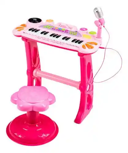 Con el nuevo Piano eléctrico Organeta juguete para niños micrófono vas a encontrar gran variedad de sonidos que a tu hijo le van a encantar y ahora viene con silla en la cual va estar mucho más cómodo a la hora de usar su piano es el mejor que le puedes dar a tu pequeño ya que el se va a sentir muy bien al momento de usarlo. . Gracias a este piano tu hijo te va a dar los mejores conciertos de tu vida y lo van a recordar para siempre. Este instrumento musical de juguete introducirá a tu hijo al mundo de la música de manera divertida. Es un teclado con múltiples tonos, control de ritmo, efectos de percusión, función de grabación y reproducción, control de volumen, control de ritmo, swich de encendido, además incluye micrófono con soporte. Características principales: Tiene 31 teclas Ayuda a desarrollar habilidades Puedes acompañarlo con un celular, tablet, etc Se usa con 3 pilas AA Elementos incluidos: Teclado Micrófono Soporte del micrófono Base del teclado Silla Dimensiones: Piano con micrófono 57 cm x 47 cm x 22 cm Silla 26 cm x 25.5 cm de diámetro Color rosado
