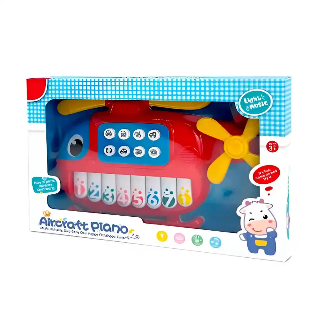 ¡Despega hacia un mundo de música, luces y aprendizaje con nuestro increíble Piano Helicóptero! Este adorable y colorido juguete 2 en 1 es el copiloto perfecto para la estimulación temprana de tu pequeño, combinando la diversión de un vehículo con la magia de un instrumento musical. Tu futuro piloto podrá componer sus primeras melodías en las teclas numeradas del piano, explorar diferentes sonidos de vehículos con los botones interactivos y maravillarse mientras las hélices giran con luces parpadeantes. Es una forma fantástica de introducir a los niños en el mundo de la música, los números y los sonidos, todo mientras desarrollan su coordinación y estimulan sus sentidos de una manera súper entretenida. ¡Prepárate para un viaje lleno de ritmo y descubrimientos! Ficha Técnica: Material : Plástico ABS Funcionamiento: 3 Baterías AA ( Incluida) Edad Apta + 3 años Dimensiones del vehículo : 28 cm x 19 cm x 4 cm Referencia: 6636 Certificado de conformidad: E5-0359-2021 ** _Para defectos de fábrica o retractos: \_Por favor revise el producto apenas lo reciba y antes de usarlo. No aplican ley de retracto o defectos de fábrica luego de usar el producto. Se manejan máximo 5 días para reportar defectos de fábrica (por ejemplo, producto funciona mal, piezas faltantes, rotas, etc). Para hacer efectiva la devolución el producto debe devolverse con el empaque original, el cual debe estar en buen estado, incluir todos los documentos y las partes completas y sin daños.