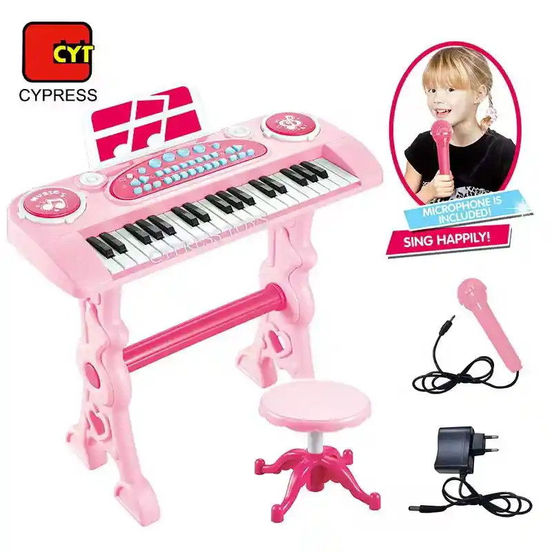Piano musical infantil con micrófono y silla en color rosa, diseñado para estimular la creatividad, la expresión artística y el desarrollo auditivo de los niños. Permite explorar sonidos, ritmos y melodías de forma divertida, incentivando el interés por la música desde temprana edad. Incluye micrófono para cantar mientras se toca, brindando una experiencia más completa e interactiva. La silla incluida ofrece comodidad durante el uso, adaptándose al tamaño infantil para mayor estabilidad. Fabricado con materiales resistentes y de fácil limpieza, es ideal para uso en el hogar. Su diseño práctico facilita el armado y permite disfrutar del producto de manera inmediata. Características principales: Piano musical infantil con múltiples sonidos Incluye micrófono para función de canto Silla incluida para mayor comodidad Diseño en color rosa Favorece la creatividad, coordinación y desarrollo auditivo Una opción ideal para incentivar el aprendizaje musical y el entretenimiento en niños de forma segura y divertida.