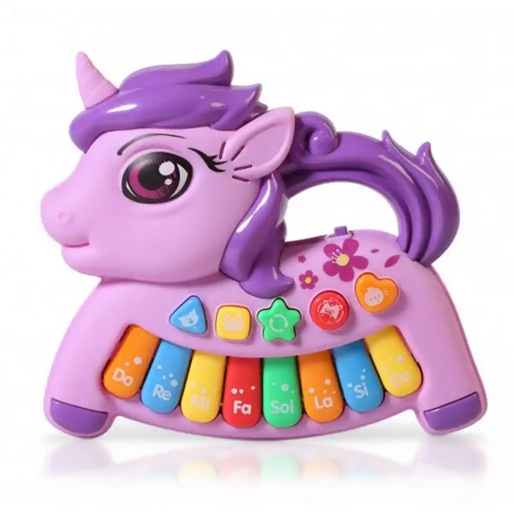 Hermoso y divertido Piano con forma de Unicornio que puede ser el primer instrumento para que tu bebe se adentre en el mundo musical a través de los sonidos, los colores y las formas. Cada barra tiene las notas musicales donde el niño (a) podrá presionar las teclas para hacer su propia música. Las notas musicales están representadas por un color diferente y en escala progresiva. Esto permitiría que tu bebe desarrolle la coordinación de las manos y los ojos, la cognición y la capacidad de reconocimiento de sonidos de forma activa audición. El piano este fabricado con plástico duradero no tóxico, no BPA y sin plomo. No daña a sus hijos, diseñado con bordes lisos, que es seguro para que el bebé juegue. Durable y colorido ////El piano incluye las baterias //// Ficha Técnica: Material: Plastico libre de BPA Dimensiones ( Alto x Ancho x Largo ) : 3 cm x 21 cm x 19 cm Apto para bebes + 18 meses Certificado de conformidad: E5-0359-2021 Referencia: TX-5478A ** _Para defectos de fábrica o retractos: \_Por favor revise el producto apenas lo reciba y antes de usarlo. No aplican ley de retracto o defectos de fábrica luego de usar el producto. Se manejan máximo 5 días para reportar defectos de fábrica (por ejemplo, producto funciona mal, piezas faltantes, rotas, etc). Para hacer efectiva la devolución el producto debe devolverse con el empaque original, el cual debe estar en buen estado, incluir todos los documentos y las partes completas y sin daños.