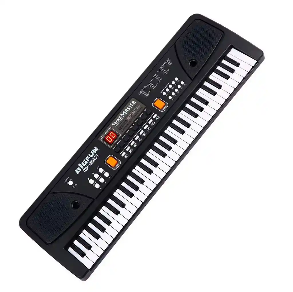 ¡Despierta la estrella musical que tu pequeño lleva dentro con el Teclado Electrónico BIGFUN! Este piano de 61 teclas es el instrumento perfecto para iniciar un increíble viaje musical, ofreciendo una experiencia completa para aprender y crear las primeras melodías. Equipado con una gran variedad de tonos, ritmos y canciones de demostración, las posibilidades creativas son infinitas, mientras que su función de aprendizaje guía los primeros pasos de los futuros genios. Además, incluye un micrófono para que los artistas en casa puedan cantar sus éxitos y dar conciertos inolvidables. Gracias a su práctica doble alimentación, mediante cable USB o baterías, la diversión puede continuar en cualquier habitación o viaje. Es el regalo ideal para fomentar el talento, la coordinación y el amor por la música de una forma entretenida y educativa. ¡Que el espectáculo comience! Ficha Técnica: Dimensiones del tapete: 62 cm x 19 cm x 6 cm Funcionamiento: Corriente eléctrica o Baterias Edad Apta : + 3 años Certificado de conformidad: SL-CS-210044 Referencia: BF-630A2 ** _Para defectos de fábrica o retractos: \_Por favor revise el producto apenas lo reciba y antes de usarlo. No aplican ley de retracto o defectos de fábrica luego de usar el producto. Se manejan máximo 5 días para reportar defectos de fábrica (por ejemplo, producto funciona mal, piezas faltantes, rotas, etc). Para hacer efectiva la devolución el producto debe devolverse con el empaque original, el cual debe estar en buen estado, incluir todos los documentos y las partes completas y sin daños.