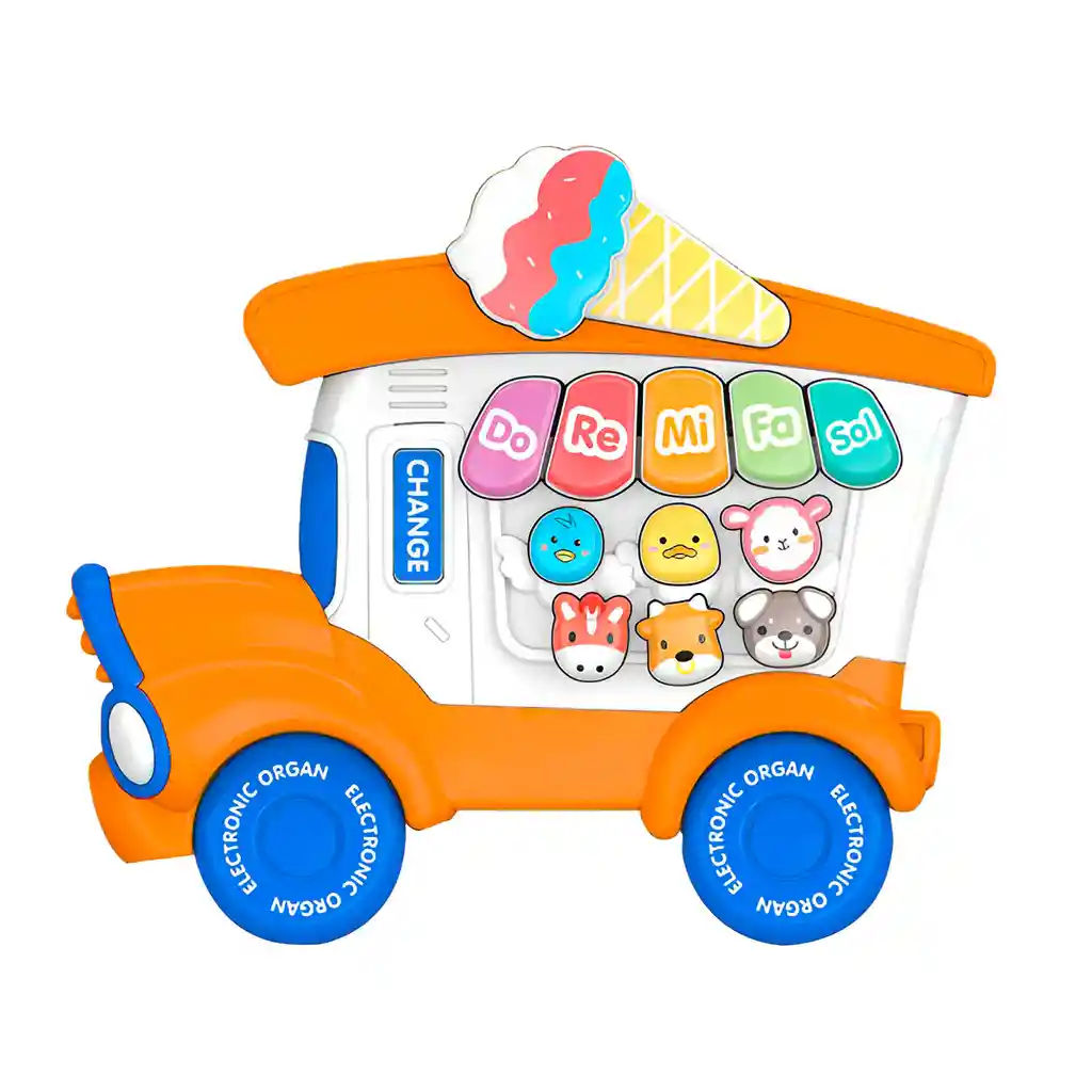 Haz que tu bebé descubra la música de forma divertida con nuestro encantador Piano de Animales en forma de camión de helados, diseñado con teclas coloridas y figuras de adorables animales que invitan a explorar sonidos y melodías. Este juguete estimula la coordinación mano-ojo, el desarrollo cognitivo y el reconocimiento auditivo mientras ofrece horas de entretenimiento seguro gracias a su fabricación en plástico duradero, libre de bordes filosos. Con un diseño vibrante y resistente, es el compañero ideal para iniciar a los más pequeños en el maravilloso mundo musical. ////El piano incluye las baterías //// Ficha Técnica: Material: Plástico libre de BPA Dimensiones: 27 cm x 24 cm x 3,5 cm Alimentación: 3 Baterías AA Apto para bebes + 3 Años Referencia: C7115 Certificado de conformidad: E5-0359-2021 ** _Para defectos de fábrica o retractos: \_Por favor revise el producto apenas lo reciba y antes de usarlo. No aplican ley de retracto o defectos de fábrica luego de usar el producto. Se manejan máximo 5 días para reportar defectos de fábrica (por ejemplo, producto funciona mal, piezas faltantes, rotas, etc). Para hacer efectiva la devolución el producto debe devolverse con el empaque original, el cual debe estar en buen estado, incluir todos los documentos y las partes completas y sin daños.