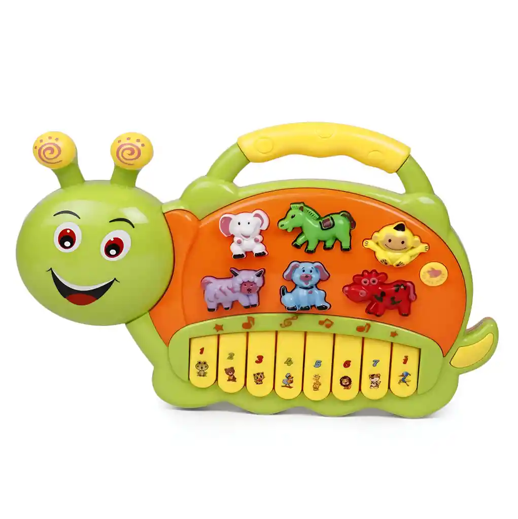 Este piano con forma de oruga es un juguete musical vibrante y educativo, diseñado para atraer a los más pequeños con sus teclas en forma de animales y otras teclas numeradas que facilitan la exploración musical. Sus colores llamativos y divertidos capturan la atención de los niños, mientras que su diseño intuitivo fomenta el aprendizaje a través del juego, ayudando a desarrollar habilidades motoras y el reconocimiento de sonidos y colores. /// El juguete incluye Baterías /// Ficha Tècnica: Dimensiones: 25 cm x 19 cm x 3 cm Materiales: Plástico ABS Tipo de Baterías: AA Edad recomendada: + 3 Años Referencia: 855-4A Certificado de conformidad: CS-LCO-13233-2021S2/432 Términos de Garantía: Para defectos de fábrica o retractos: Por favor revise el producto apenas lo reciba y antes de usarlo. No aplican ley de retracto o defectos de fábrica luego de usar el producto. Se manejan máximo 5 días para reportar defectos de fábrica (por ejemplo, producto funciona mal, piezas faltantes, rotas, etc). Para hacer efectiva la devolución el producto debe devolverse con el empaque original, el cual debe estar en buen estado, incluir todos los documentos y las partes completas y sin daños.