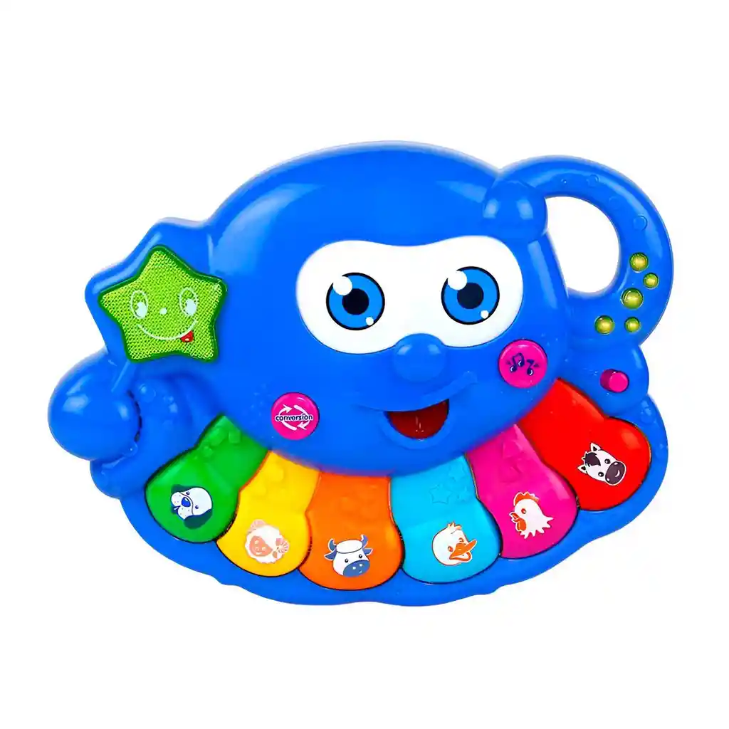 Este divertido piano infantil en forma de pulpo es un juguete didáctico ideal para estimular la creatividad y el desarrollo sensorial de los más pequeños, ya que cuenta con teclas de colores que reproducen diferentes sonidos y melodías, botones interactivos que representan animales para aprender sus sonidos y un diseño llamativo con luces y formas que capturan la atención, ofreciendo horas de juego educativo mientras ayuda a mejorar la coordinación, la memoria auditiva y la imaginación de los niños. Ficha Tècnica: Dimensiones del piano : 27 cm x 19 cm x 4 cm Funcionamiento: 3 Baterias AA ( Incluidas ) Materiales: Plástico ABS Edad recomendada: + 3 años Certificado de conformidad: SL-CS-210044 Referencia: NO.6688 ** _Para defectos de fábrica o retractos: \_Por favor revise el producto apenas lo reciba y antes de usarlo. No aplican ley de retracto o defectos de fábrica luego de usar el producto. Se manejan máximo 5 días para reportar defectos de fábrica (por ejemplo, producto funciona mal, piezas faltantes, rotas, etc). Para hacer efectiva la devolución el producto debe devolverse con el empaque original, el cual debe estar en buen estado, incluir todos los documentos y las partes completas y sin daños.