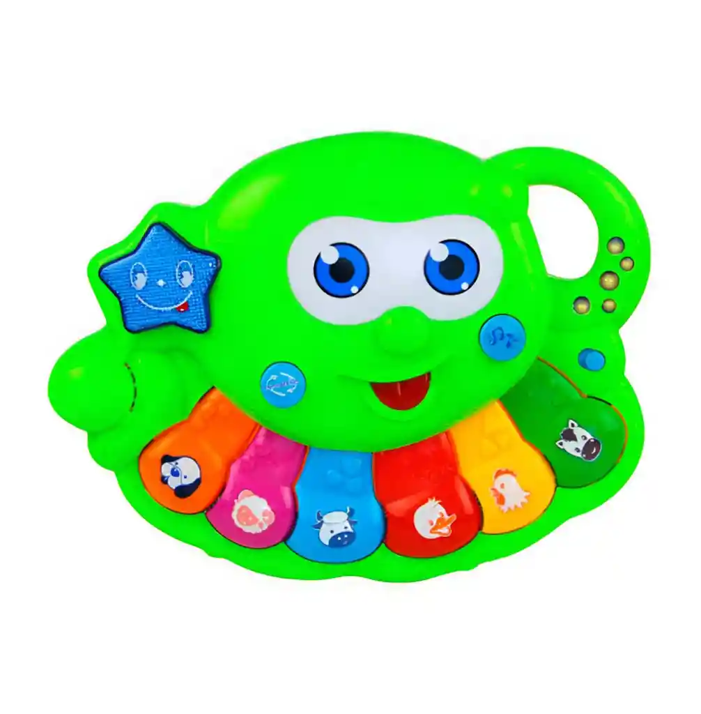 Este divertido piano infantil en forma de pulpo es un juguete didáctico ideal para estimular la creatividad y el desarrollo sensorial de los más pequeños, ya que cuenta con teclas de colores que reproducen diferentes sonidos y melodías, botones interactivos que representan animales para aprender sus sonidos y un diseño llamativo con luces y formas que capturan la atención, ofreciendo horas de juego educativo mientras ayuda a mejorar la coordinación, la memoria auditiva y la imaginación de los niños. Ficha Tècnica: Dimensiones del piano : 27 cm x 19 cm x 4 cm Funcionamiento: 3 Baterias AA ( Incluidas ) Materiales: Plástico ABS Edad recomendada: + 3 años Certificado de conformidad: SL-CS-210044 Referencia: NO.6688 ** _Para defectos de fábrica o retractos: \_Por favor revise el producto apenas lo reciba y antes de usarlo. No aplican ley de retracto o defectos de fábrica luego de usar el producto. Se manejan máximo 5 días para reportar defectos de fábrica (por ejemplo, producto funciona mal, piezas faltantes, rotas, etc). Para hacer efectiva la devolución el producto debe devolverse con el empaque original, el cual debe estar en buen estado, incluir todos los documentos y las partes completas y sin daños.