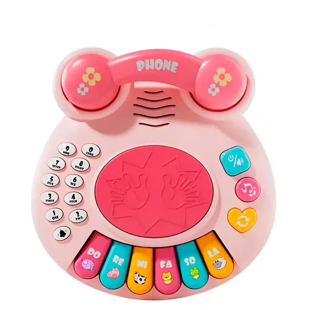 Teléfono educativo multifuncional ideal para niñas y niños pequeños, diseñado con teclas numéricas, botones musicales y teclas de piano que reproducen notas y melodías, fomentando el aprendizaje temprano de los números, los sonidos y la música; incluye un tambor central para juegos de percusión, funciones de volumen, canciones de cuna y un auricular removible para simular llamadas, estimulando la imaginación, la coordinación y la interacción mientras se divierten de manera segura y educativa. Ficha Técnica: Dimensiones de la figura: 22 cm x 21 cm x 4 cm Funcionamiento: 3 Baterías AA ( Incluidas ) Material : Plástico edad apta: + 36 Meses Certificado de conformidad: SL-CS-210044 Referencia: C4412 ** _Para defectos de fábrica o retractos: \_Por favor revise el producto apenas lo reciba y antes de usarlo. No aplican ley de retracto o defectos de fábrica luego de usar el producto. Se manejan máximo 5 días para reportar defectos de fábrica (por ejemplo, producto funciona mal, piezas faltantes, rotas, etc). Para hacer efectiva la devolución el producto debe devolverse con el empaque original, el cual debe estar en buen estado, incluir todos los documentos y las partes completas y sin daños.
