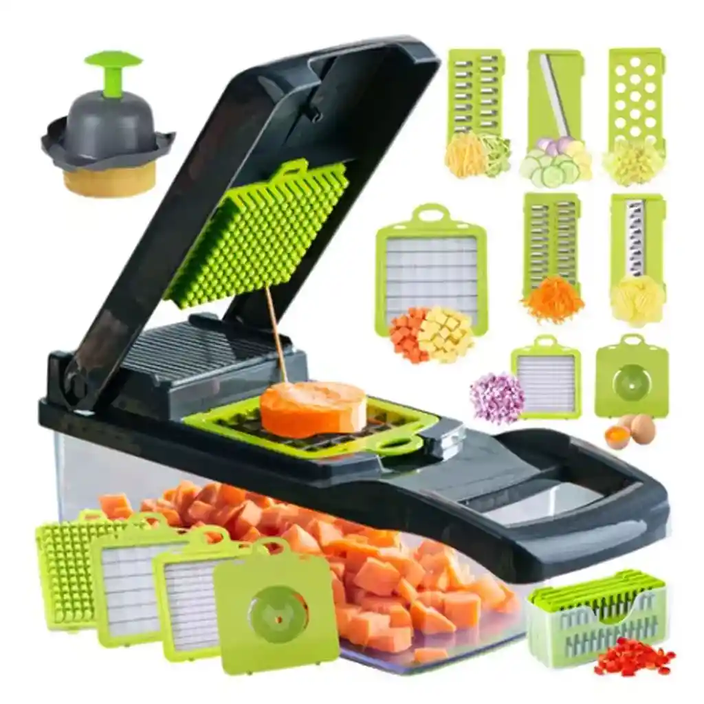 Picador de verduras, picador de cebolla 16 en 1, picador de alimentos multifuncional con 8 cuchillas cortadoras y máquina de cortar, cortador de verduras ajustable con contenedor Alta calidad: el cortador y cortador de verduras es multifuncional picador y rebanador. Este cortador es una práctica herramienta de cocina. El cortador de verduras está hecho de materiales de primera clase, como cuchillas de acero inoxidable y materiales de grado alimenticio. Un picador de alimentos sin duda puede mejorar tu salud. Cuchillas súper afiladas y resistentes a la corrosión: las cuchillas de este picador de verduras de cebolla están hechas de acero inoxidable, lo que las hace más duraderas y las mantiene libres de óxido. Construido para durar. Utiliza cuchillas de acero inoxidable de grado muy afiladas para picarpicar verduras duras y puede cortar la mayoría de tipos de verduras y frutas. 16 funciones diferentes: tres cuchillas picadoras de diferentes tamaños y 8 cuchillas intercambiables para rebanar, juliana, rallar y triturar ofrecen la funcionalidad de múltiples herramientas de cocina en una sola pieza, muy versátil. Las cuchillas de acero inoxidable de alta calidad crearán cebollas y tomates perfectamente picados.