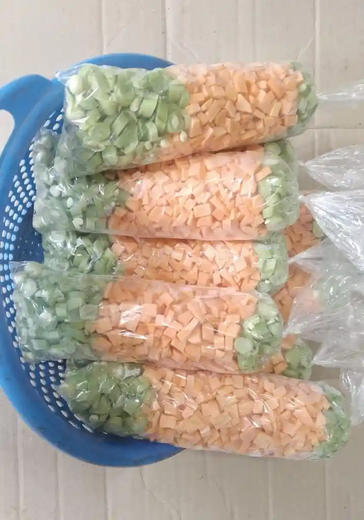 habichuela, arveja y zanahoria picada