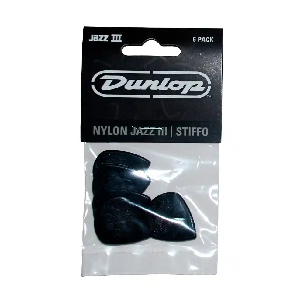 PICK NYLON JAZZ III DUNLOP 47P3S,BLACK, 6 UNIDADES