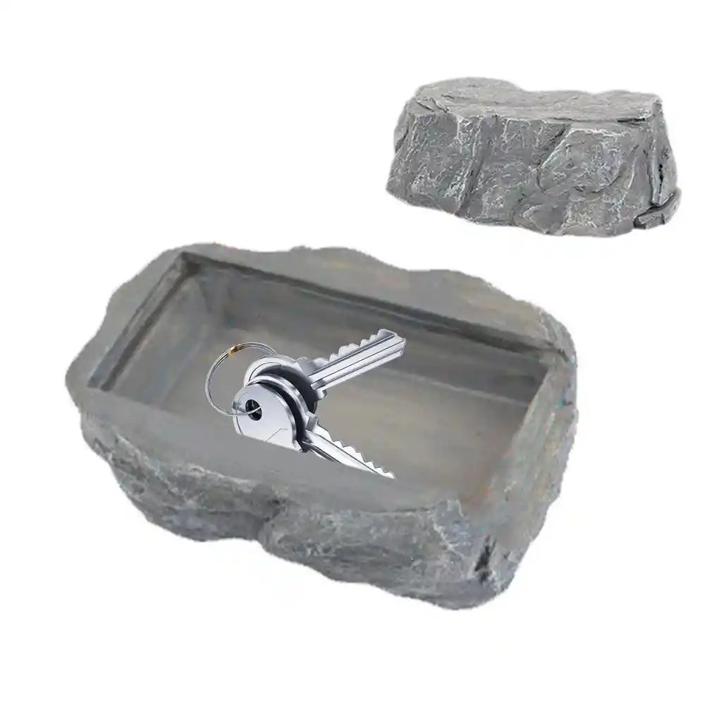 "Piedra decorativa con compartimento secreto para guardar llaves de forma segura. Su diseño realista la hace ideal para camuflarla en el jardín o en el porche. Fabricada con resina resistente a la intemperie, esta piedra asegura la protección de tus llaves mientras se mezcla perfectamente con el entorno."