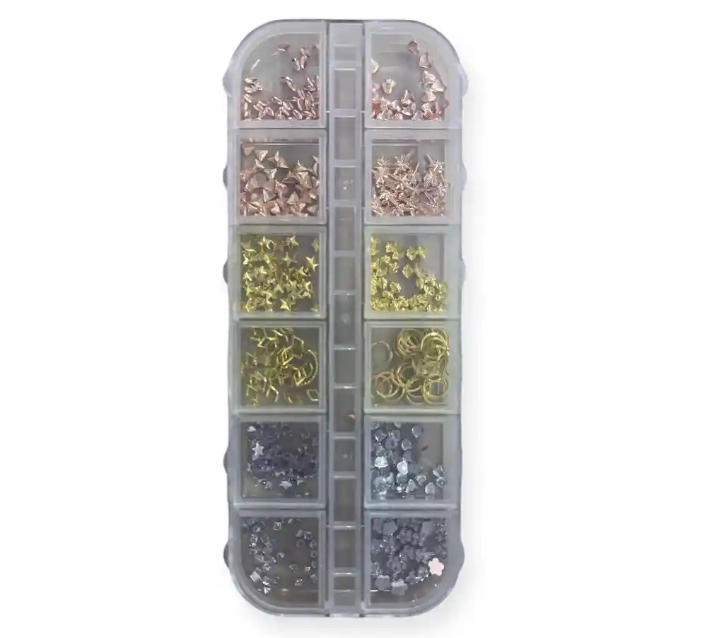 Piedras para realizar decoraciones en las uñas, 3 colores y figuras surtidas.