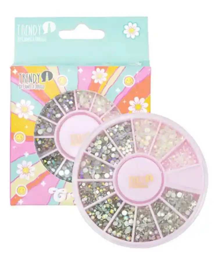 Son gemas metálicas, no de plástico. El kit incluye 4 tonos de gemas. Cada tono viene en 3 tamaños diferentes de piedritas. Son muy reflectantes y tienen un brillo hermoso.