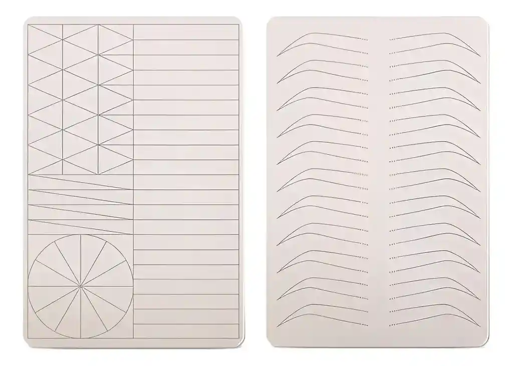 Látex de práctica de cejas de lujo rosa Dos lados practican la piel: Cada almohadilla de silicona es de doble cara, para máxima práctica. Impresión lateral con forma de ceja, impresión lateral para diseño Forma de labios y cejas. Espesor de látex de doble cara para cejas: 0.059 in, más grueso que la piel de práctica normal. Ambos son perfectos para la máquina de maquillaje permanente y la práctica de cuchillas de microblading. Látex hojas de práctica de cejas blancas Extremadamente flexibles. Se siente como piel real al tacto. Proporciona trazos de cejas para lograr una precisión perfecta. Perfecto para nano cejas, práctica de borws ombré. Látex nano hojas de práctica Ideal para principiantes y profesionales que quieren alcanzar un nivel totalmente nuevo en términos de técnica. Ayude a desarrollar sus habilidades y vea cómo aumenta su nivel de creatividad. Látex hojas de práctica para cejas Almohadillas de silicona especialmente diseñadas para un nuevo nivel de experiencia.