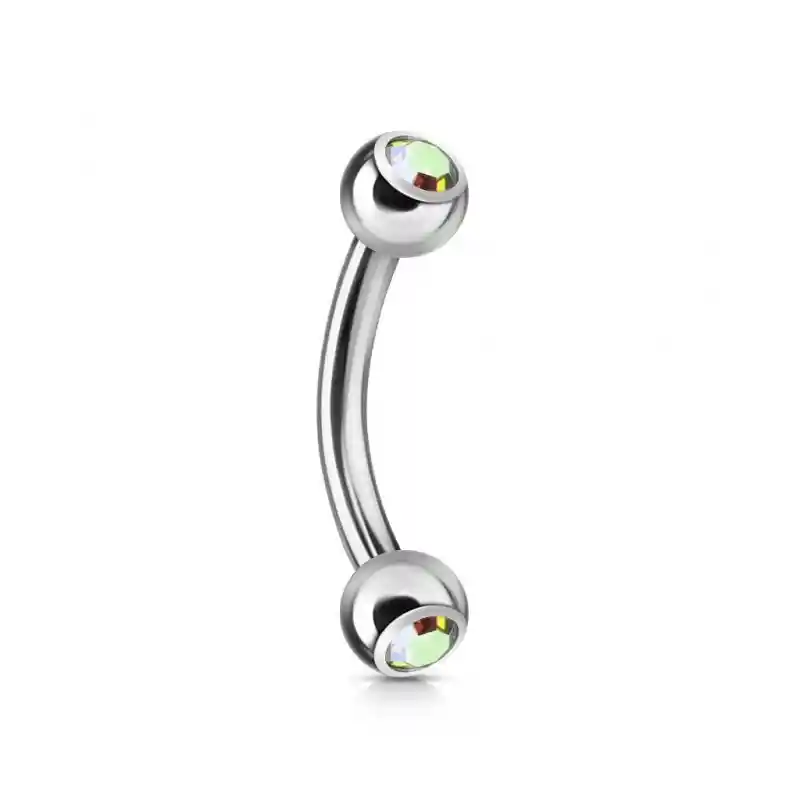 Un Piercing Banana, o "curved barbell", es una pieza de joyería diseñada con una forma curvada que se adapta con comodidad a varias áreas del cuerpo. Su singular diseño incluye extremos con bolas ornamentales o detalles decorativos que pueden variar en tamaño y estilo. Este tipo de piercing es conocido por su versatilidad y capacidad para realzar diferentes zonas con estilo y originalidad.