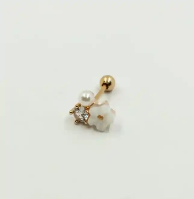 HERMOSO PIERCING DORADO CON UNA PERLA, UNA FLOR Y UN CRISTAL PERFECTO PARA DECORAR TU OREJA, ELABORADO EN RODIO, TE VERAS HERMOSA, ÚNICA Y A LA MODA