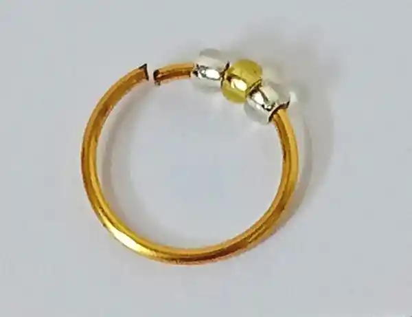Piercing aro pequeño bañado en oro, bastante flexible.
