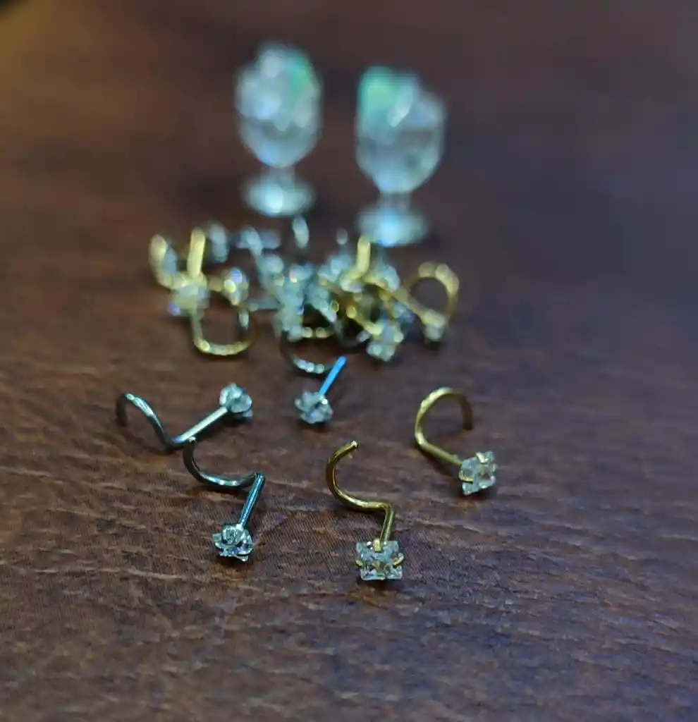 Piercing Nariz Curvo Acero Dorado Con Brillante