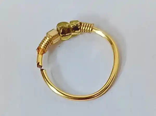 Piercing aro pequeño bañado en oro, bastante flexible.