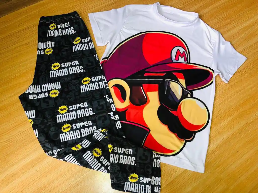 PIJAMA CABALLERO EN PIEL DE DURAZNO MANGA CORTA NEGRO CON BLANCO TALLA L/XL