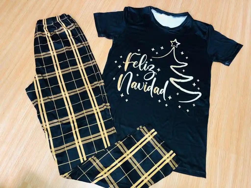 PIJAMA CABALLERO EN PIEL DE DURAZNO MANGA CORTA NEGRA CON DORADO TALLA XL
