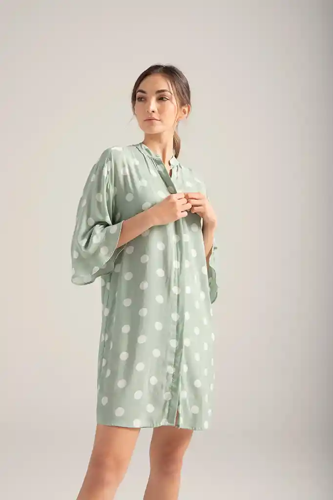 Camisón Con Botones Manga ¾ Con Bolero 1502022Xl Verde Con Lunares 100%Viscosa