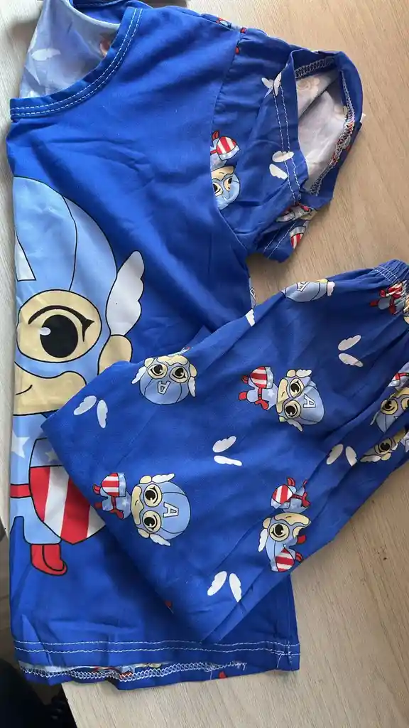 Pijama Capitán América talla 12 💥🤖 ¡Enciende el Sueño del Héroe Tecnológico! 🤖💥 Conviértelo en el invencible Capitán América con este conjunto de pijama oficial para niños 🦸♂️✨ 🔥 Diseño único en vibrante color azul con el legendario Capitán América listo para la batalla, mostrando sus escudo cargado de energía 💫⚙️ 🛌 Perfecta para dormir o jugar como un verdadero superhéroe tecnológico. 👕 camisa manga corta Tela: Algodón suave, fresca y cómoda. pantalon largo estampado 📏 Talla: 12 para niños 10 - 12 años