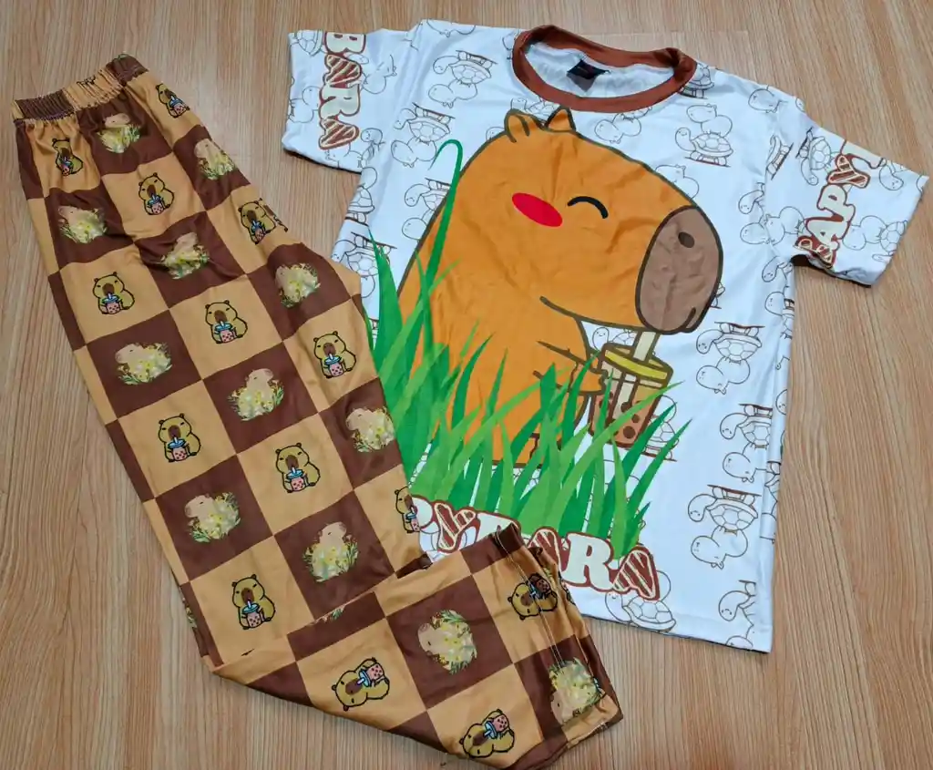 PIJAMA CAPYBARA EN PIEL DE DURAZNO MANGA CORTA MARRON CON BLANCO TALLA 16